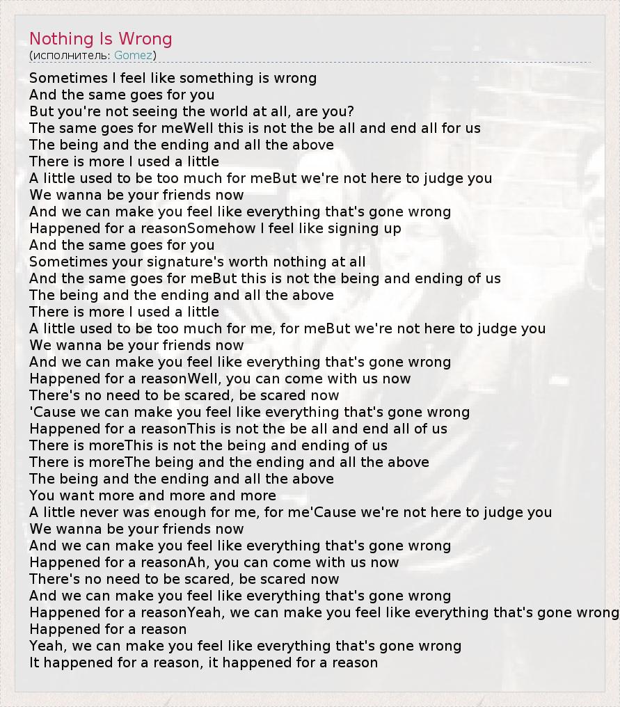 А как ты думаешь, о чем песня "Nothing Is Wrong" ?