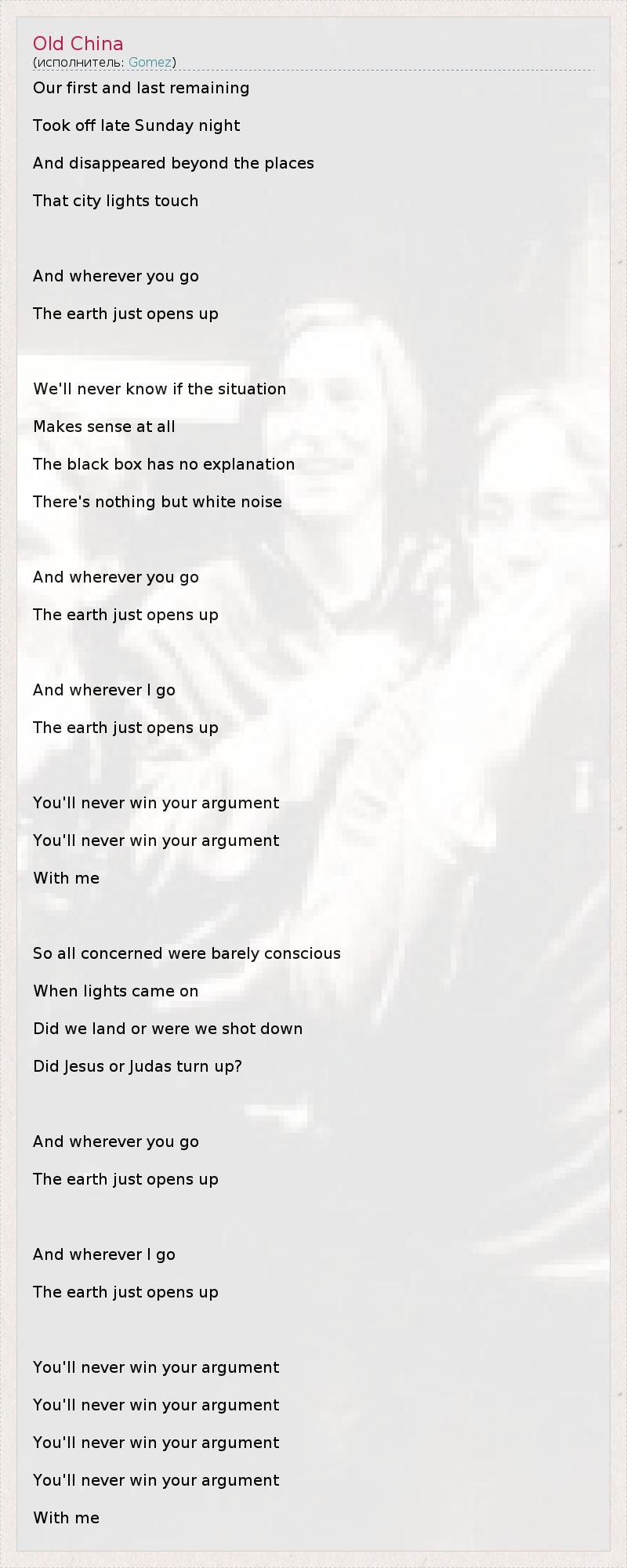 А как ты думаешь, о чем песня "Old China" ?