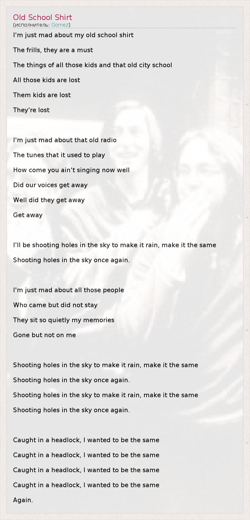 А как ты думаешь, о чем песня "Old School Shirt" ?
