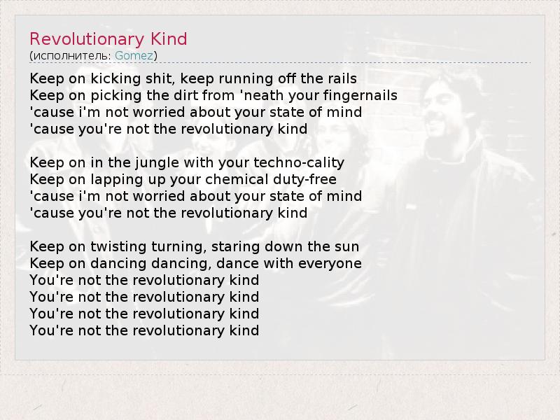А как ты думаешь, о чем песня "Revolutionary Kind" ?