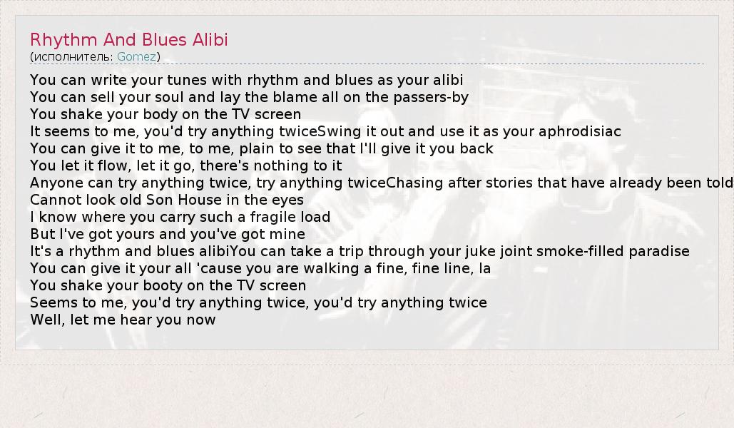 ГлавнаяИсполнителиGomezRhythm And Blues Alibi