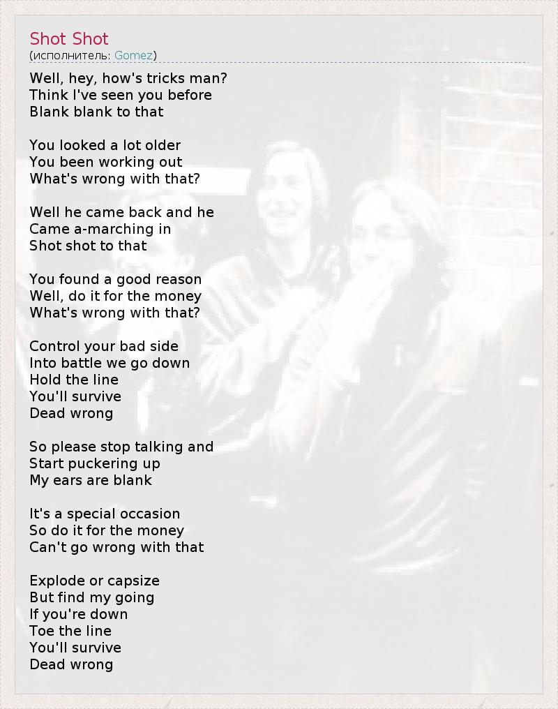 А как ты думаешь, о чем песня "Shot Shot" ?