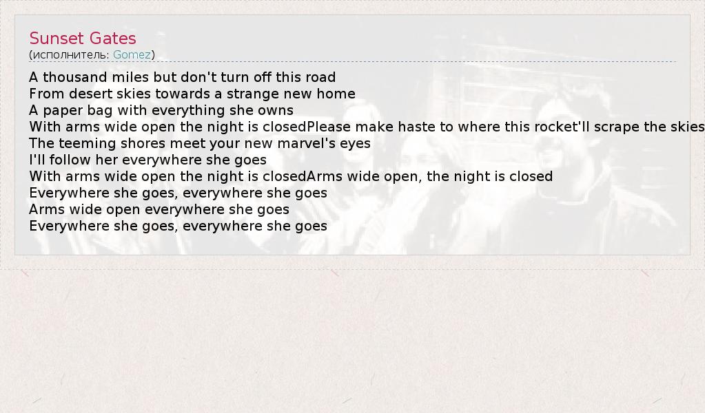 А как ты думаешь, о чем песня "Sunset Gates" ?