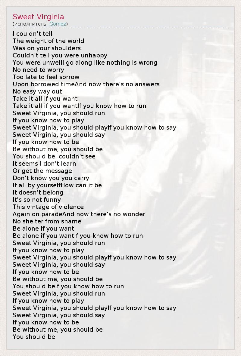 А как ты думаешь, о чем песня "Sweet Virginia" ?