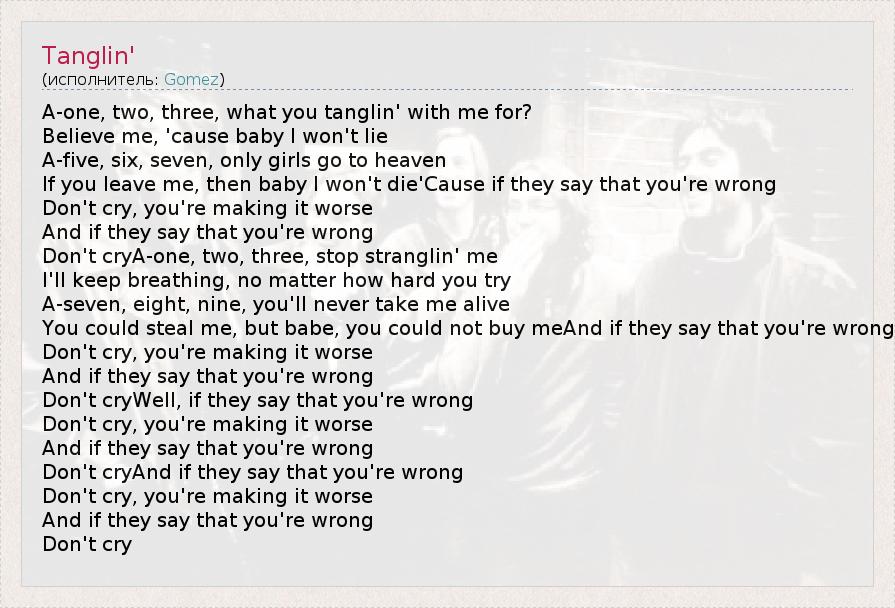 А как ты думаешь, о чем песня "Tanglin'" ?