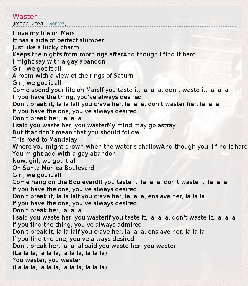 I said you waste her, you wasterIf you taste it, la la la, don't waste it, la la la