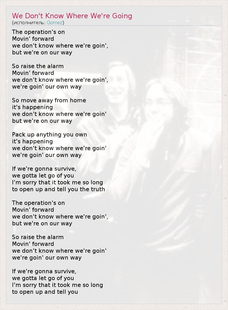 ГлавнаяИсполнителиGomezWe Don't Know Where We're Going