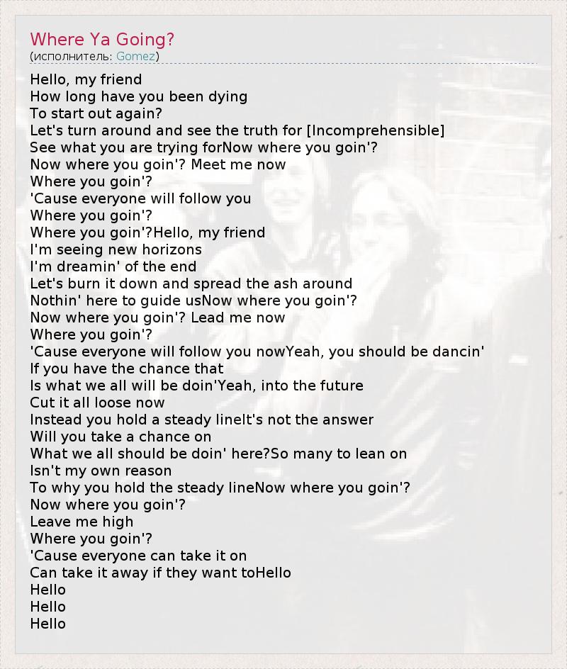 А как ты думаешь, о чем песня "Where Ya Going?" ?