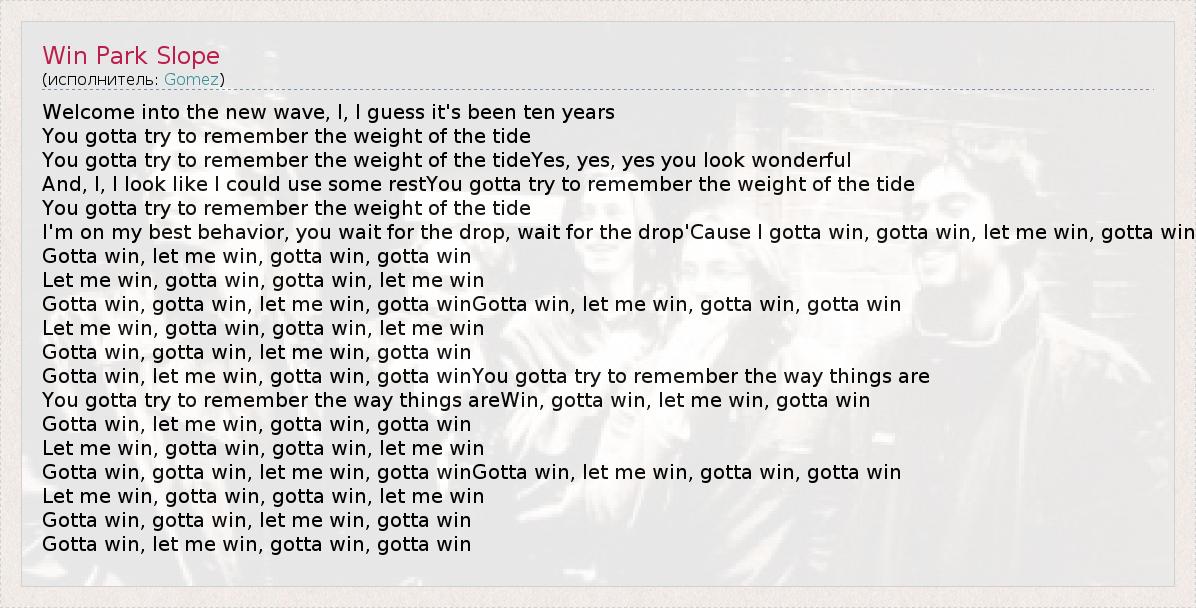 А как ты думаешь, о чем песня "Win Park Slope" ?