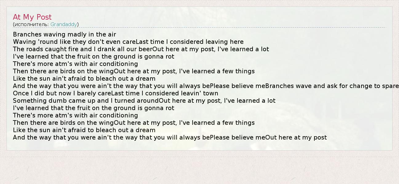 Это интересно:Щедрая талантами земля Калифорнии в 1992 году подарила жизнь еще одному рок-формированию под уютным названием Grandaddy ("Дедуля" по-нашему). Инициатором создания команды и ее идейным вдохновителем стал Джейсон Литл (Jason Lytle), житель маленького городка Модесто, в музыкальной жизни - певец, гитарист, клавишник, композитор и автор текстов. В юности Джейсон профессионально занимался скейтбордом... продолжение