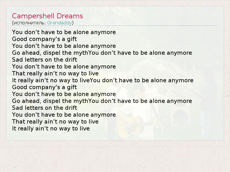 А как ты думаешь, о чем песня "Campershell Dreams" ?