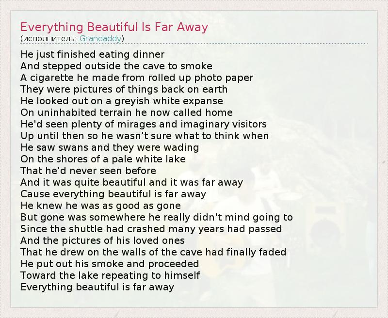 А как ты думаешь, о чем песня "Everything Beautiful Is Far Away" ?