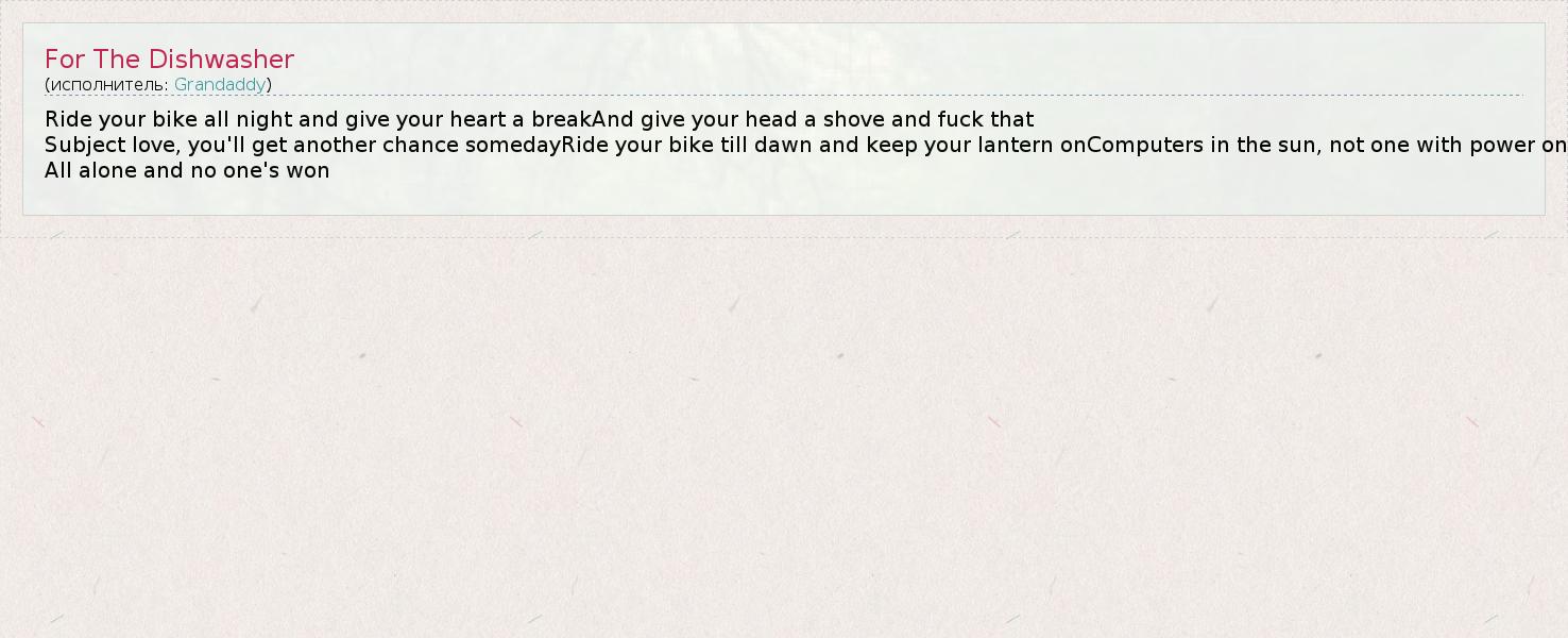А как ты думаешь, о чем песня "For The Dishwasher" ?