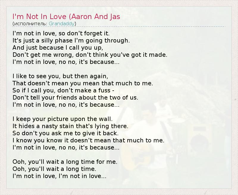 А как ты думаешь, о чем песня "I'm Not In Love (Aaron And Jas" ?