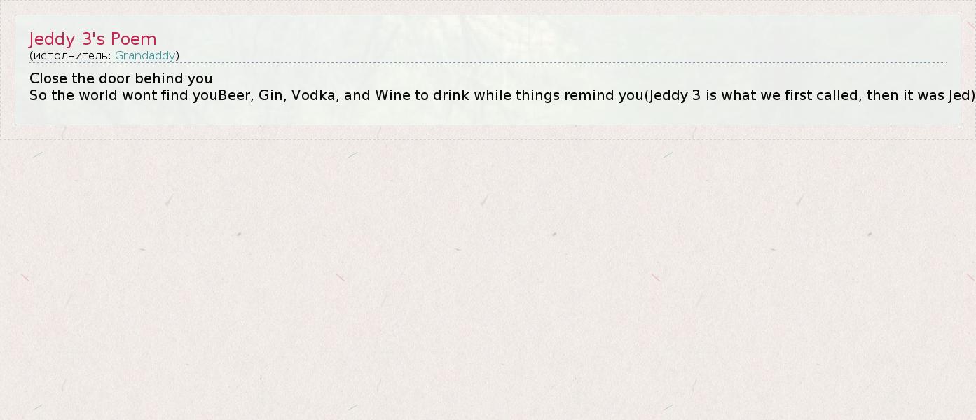 А как ты думаешь, о чем песня "Jeddy 3's Poem" ?