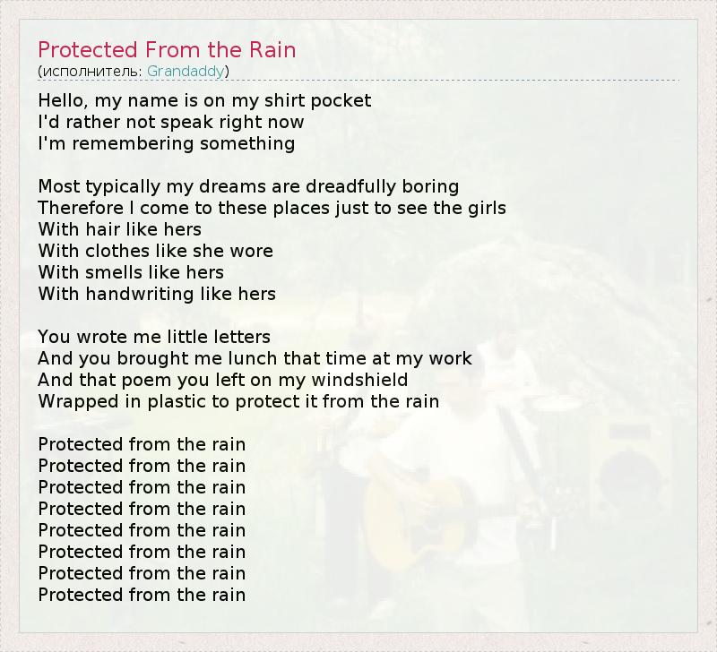 А как ты думаешь, о чем песня "Protected From the Rain" ?