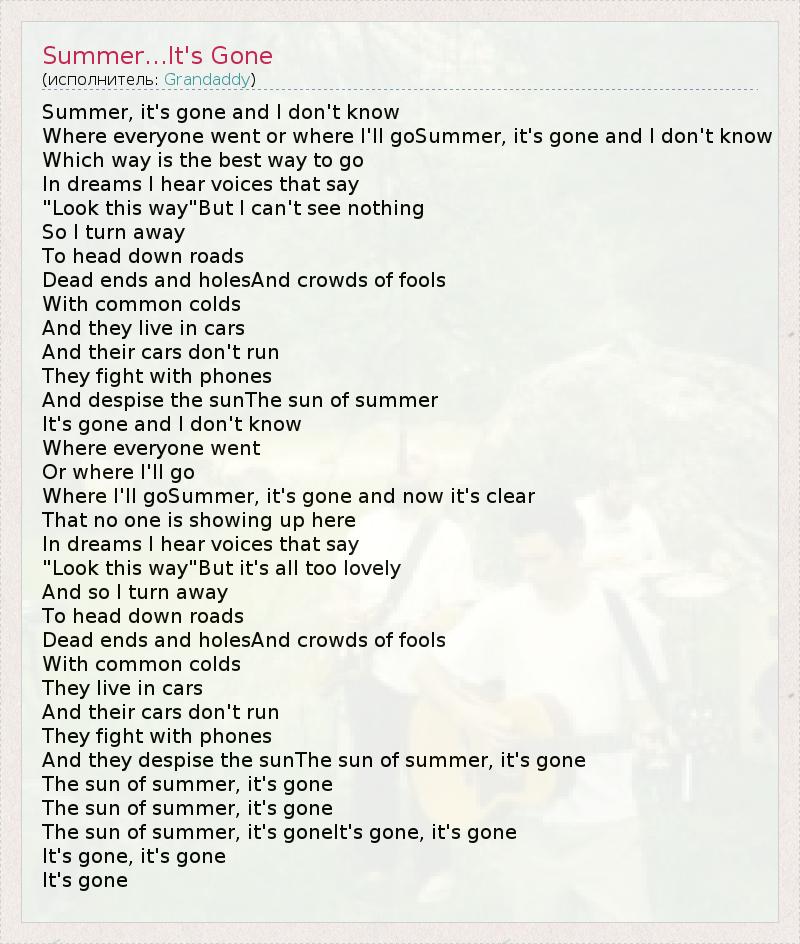 А как ты думаешь, о чем песня "Summer...It's Gone" ?