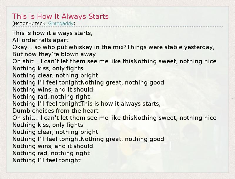 А как ты думаешь, о чем песня "This Is How It Always Starts" ?