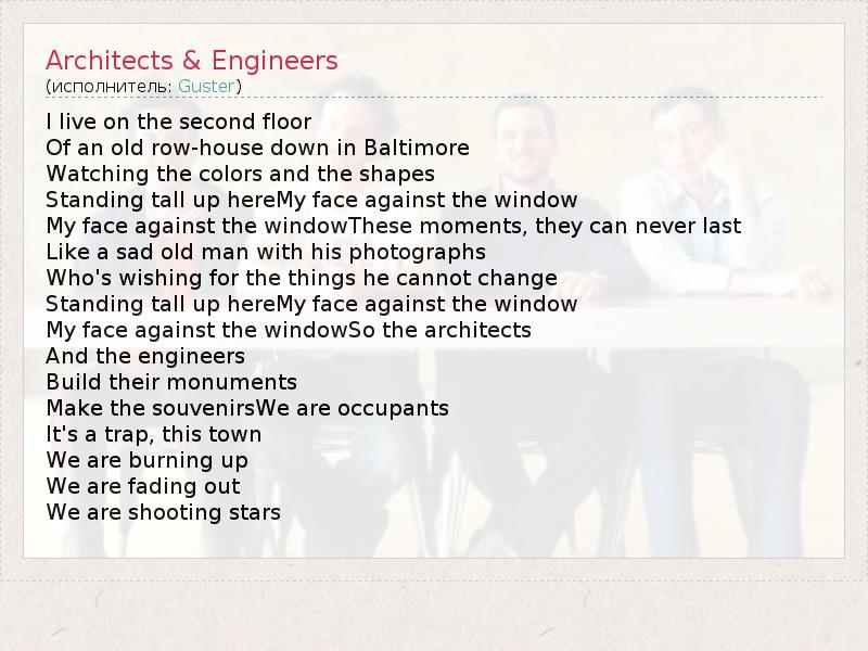 А как ты думаешь, о чем песня "Architects & Engineers" ?