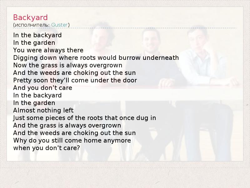 А как ты думаешь, о чем песня "Backyard" ?