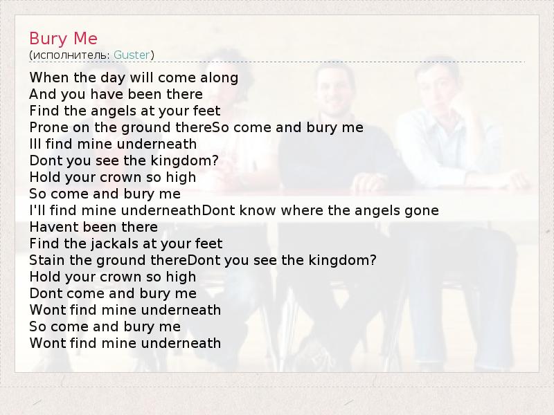 А как ты думаешь, о чем песня "Bury Me" ?