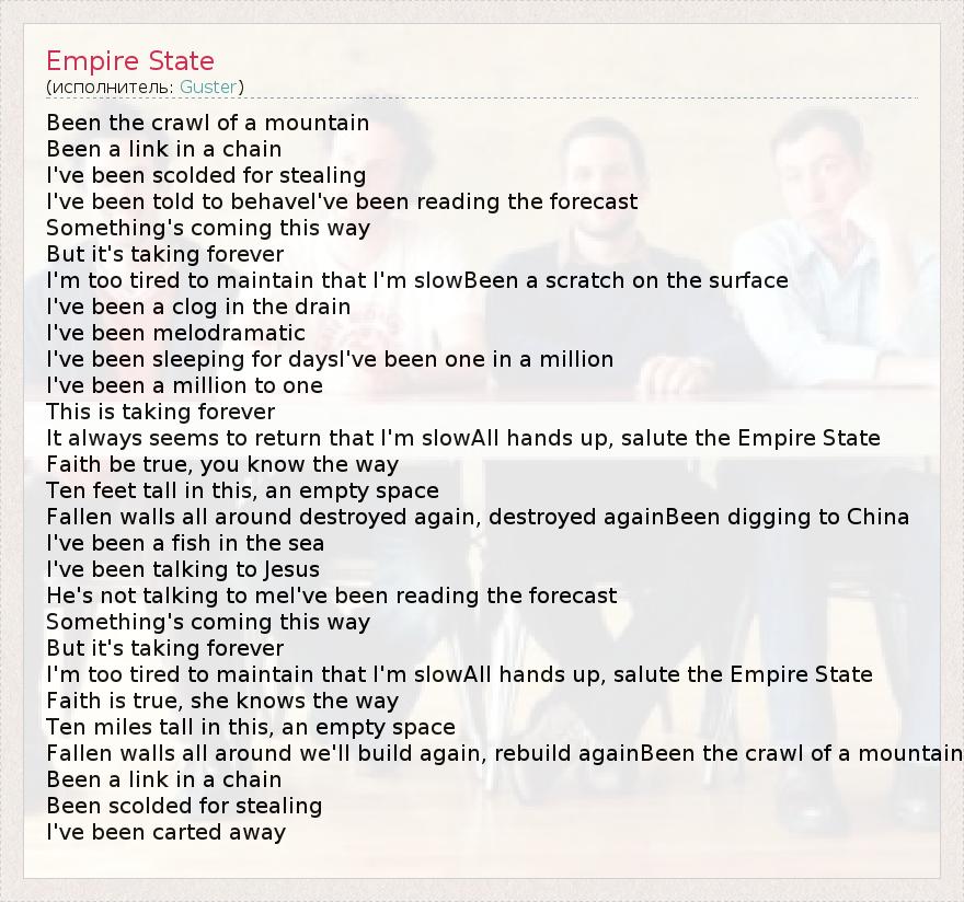 I'm too tired to maintain that I'm slowAll hands up, salute the Empire State