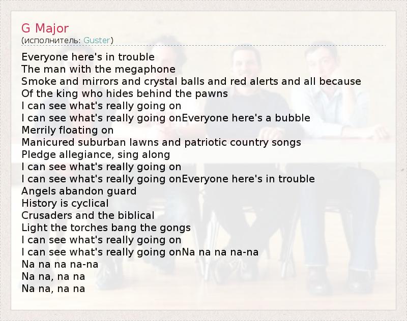 Это интересно:Guster - американская группа альтернативного рока, которая известна ее живыми концертами, юмором, и культом после. Группа сформирована Адамом Гарднером, Раяном Миллером, и Брайеном Розенуоркелем в 1991Группа осталась "подземной" для своих первых двух альбомов, "Parachute" (1994) и "Goldfly" (1997), но ворвалась в музыкальную индустрию в 1999 с ее третьим альбомом студии, "Lost and Gone Forever",... продолжение