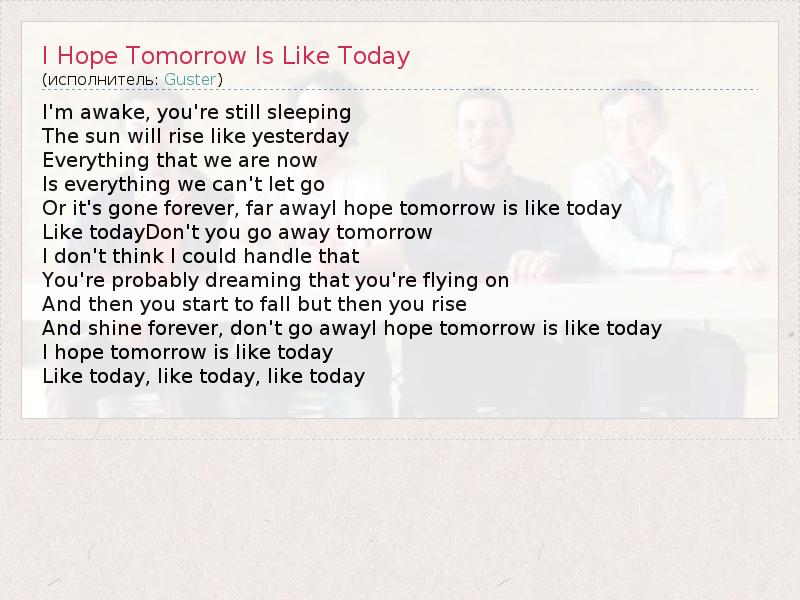 А как ты думаешь, о чем песня "I Hope Tomorrow Is Like Today" ?