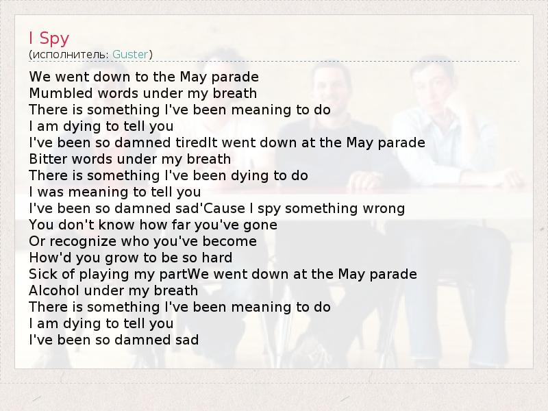 Это интересно:Guster - американская группа альтернативного рока, которая известна ее живыми концертами, юмором, и культом после. Группа сформирована Адамом Гарднером, Раяном Миллером, и Брайеном Розенуоркелем в 1991Группа осталась "подземной" для своих первых двух альбомов, "Parachute" (1994) и "Goldfly" (1997), но ворвалась в музыкальную индустрию в 1999 с ее третьим альбомом студии, "Lost and Gone Forever",... продолжение