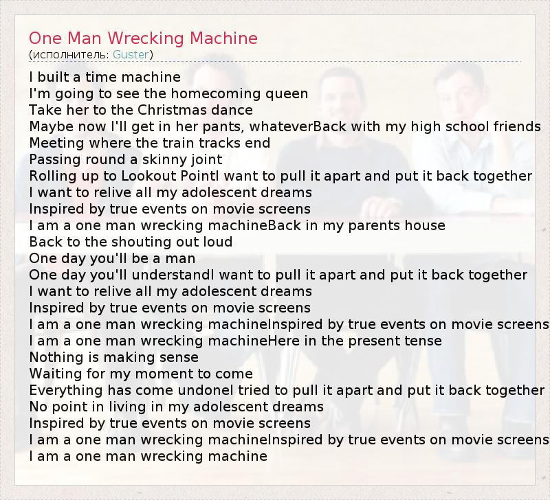 А как ты думаешь, о чем песня "One Man Wrecking Machine" ?