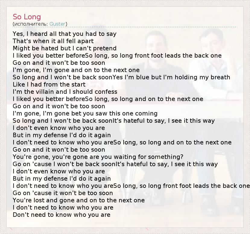 So long and I won't be back soonIt's hateful to say, I see it this way