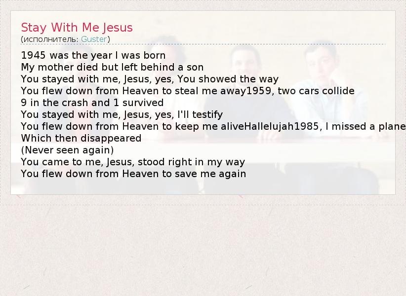 А как ты думаешь, о чем песня "Stay With Me Jesus" ?