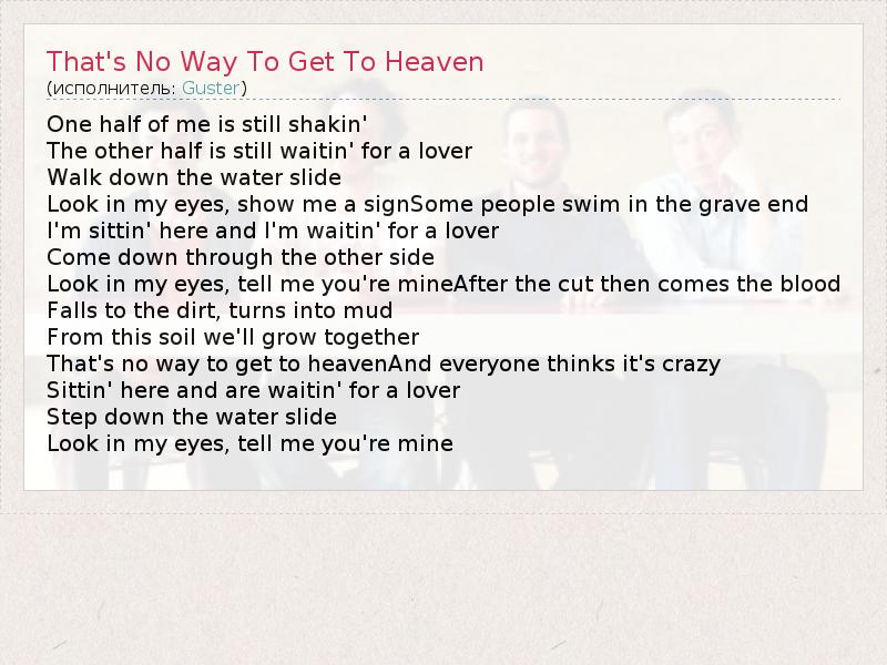 А как ты думаешь, о чем песня "That's No Way To Get To Heaven" ?