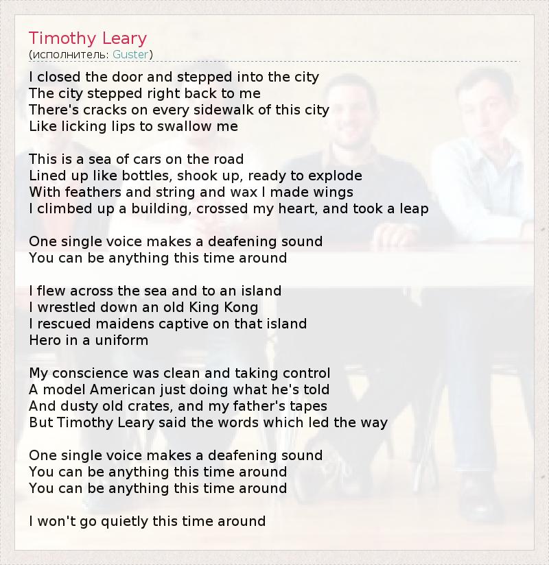 А как ты думаешь, о чем песня "Timothy Leary" ?