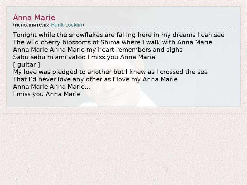 Anna Marie Anna Marie my heart remembers and sighs