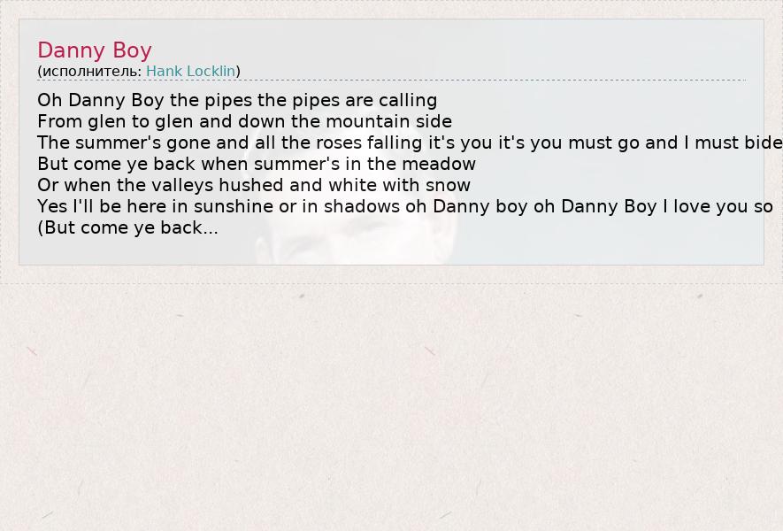 А как ты думаешь, о чем песня "Danny Boy" ?