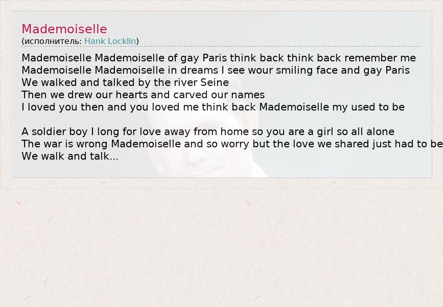 А как ты думаешь, о чем песня "Mademoiselle" ?