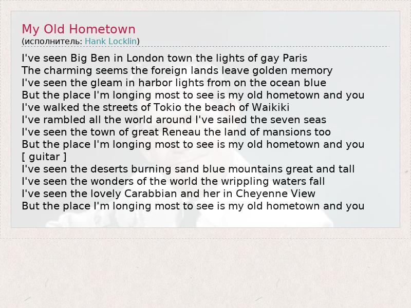 А как ты думаешь, о чем песня "My Old Hometown" ?