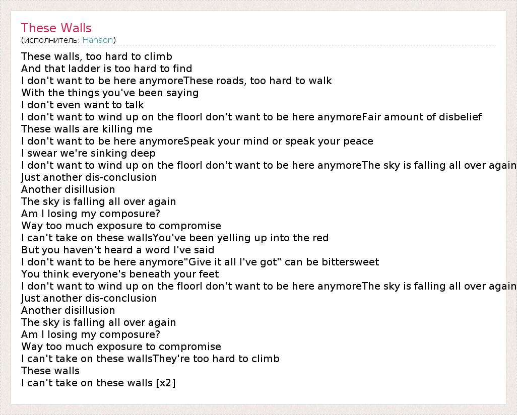 I don't want to wind up on the floorI don't want to be here anymoreFair amount of disbelief