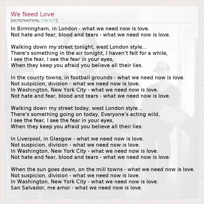 В городах, на футбольных полях – сейчас нам нужна любовь.