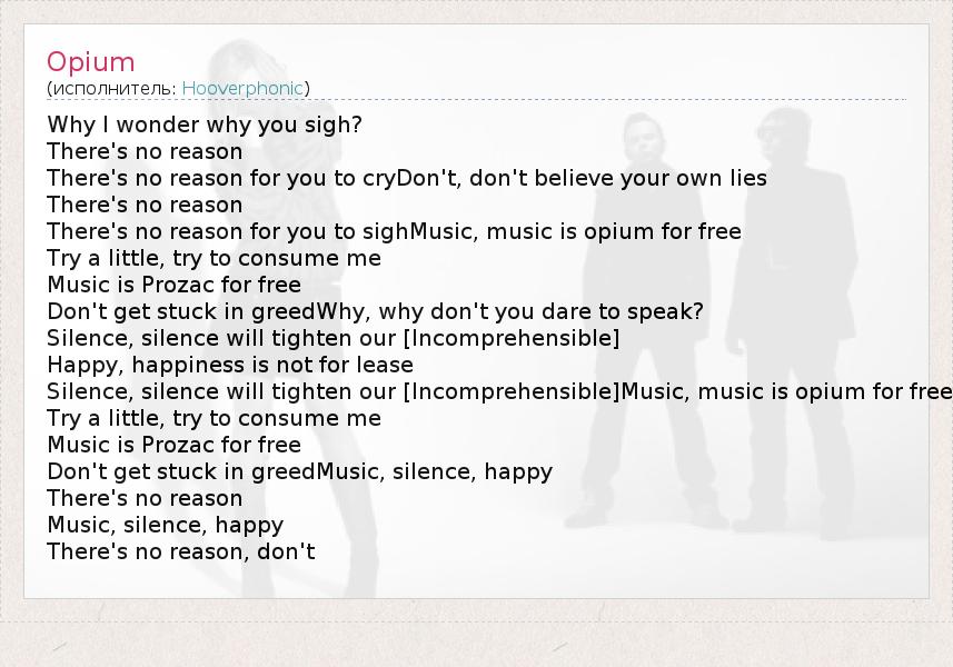 А как ты думаешь, о чем песня "Opium" ?