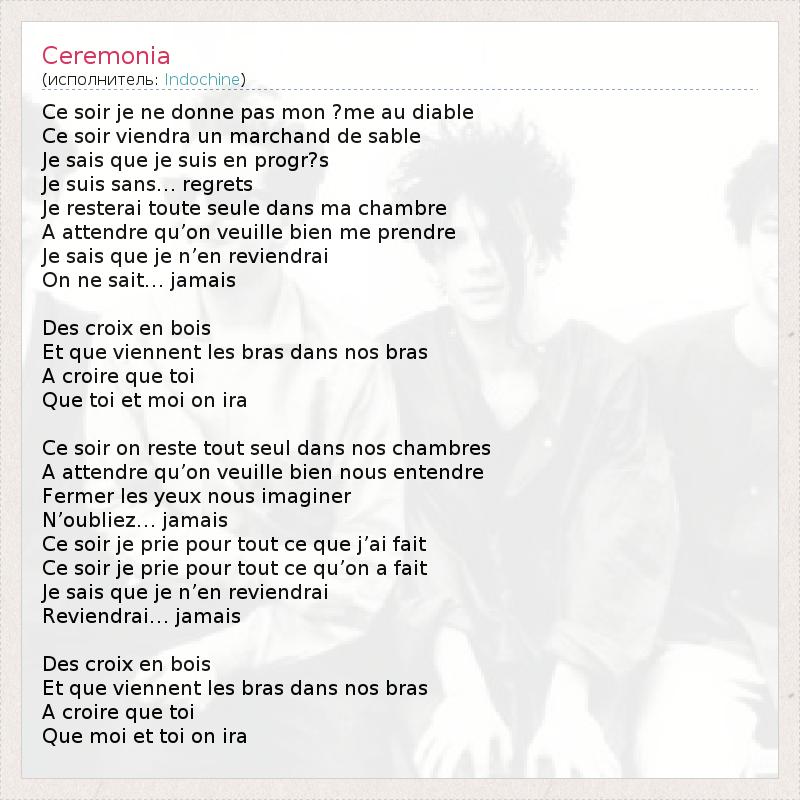 А как ты думаешь, о чем песня "Ceremonia" ?