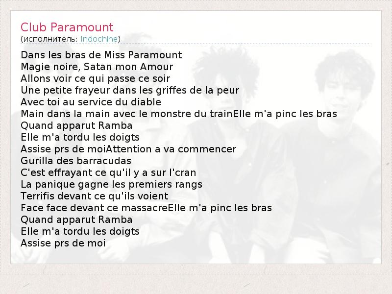 А как ты думаешь, о чем песня "Club Paramount" ?