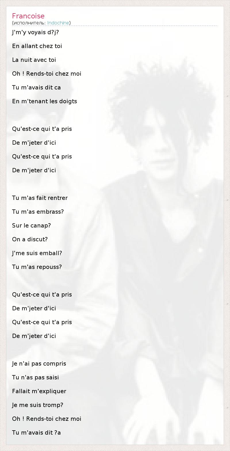 А как ты думаешь, о чем песня "Francoise" ?