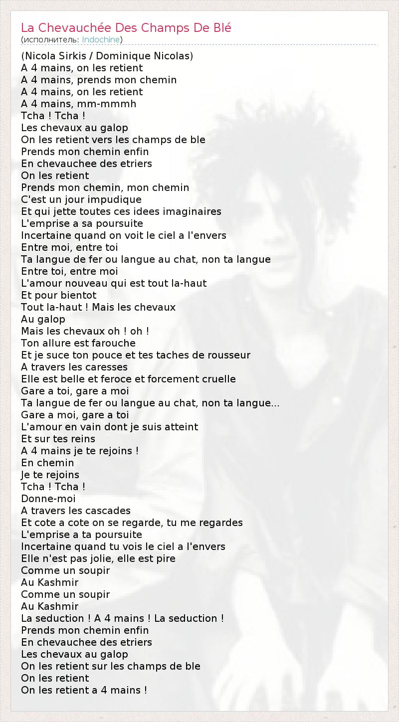 ГлавнаяИсполнителиIndochineLa Chevauchée Des Champs De Blé