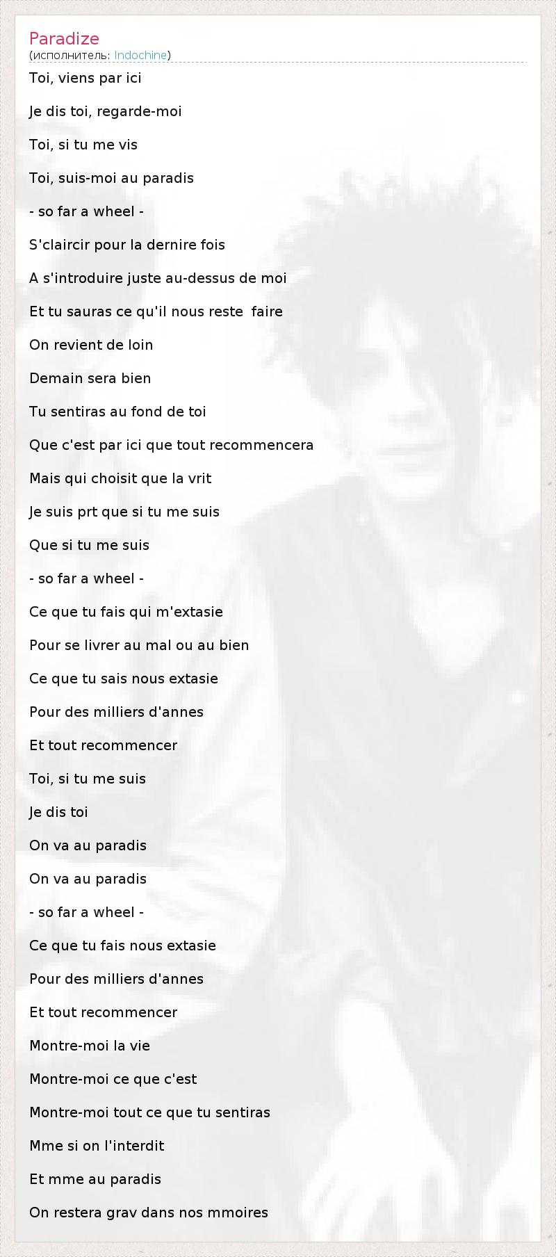 Это интересно:Indochine ("Эндощин", однако многим русскоязычным поклонникам удобнее говорить "Индошин", а для краткости принято просто "Индо" и это имя группы самое интернациональное)Родина: Париж, ФранцияЖанры: New wave, Glam rock и Gothique, pop rockСуществует с 1981 Лейблы:BMG (Ariola), Epic, Jivepic Group Официальные сайт: indo.frНынешние участники:Николя Сиркис (Nicola Sirkis) (вокал, гитара, синтез и гармоника,... продолжение