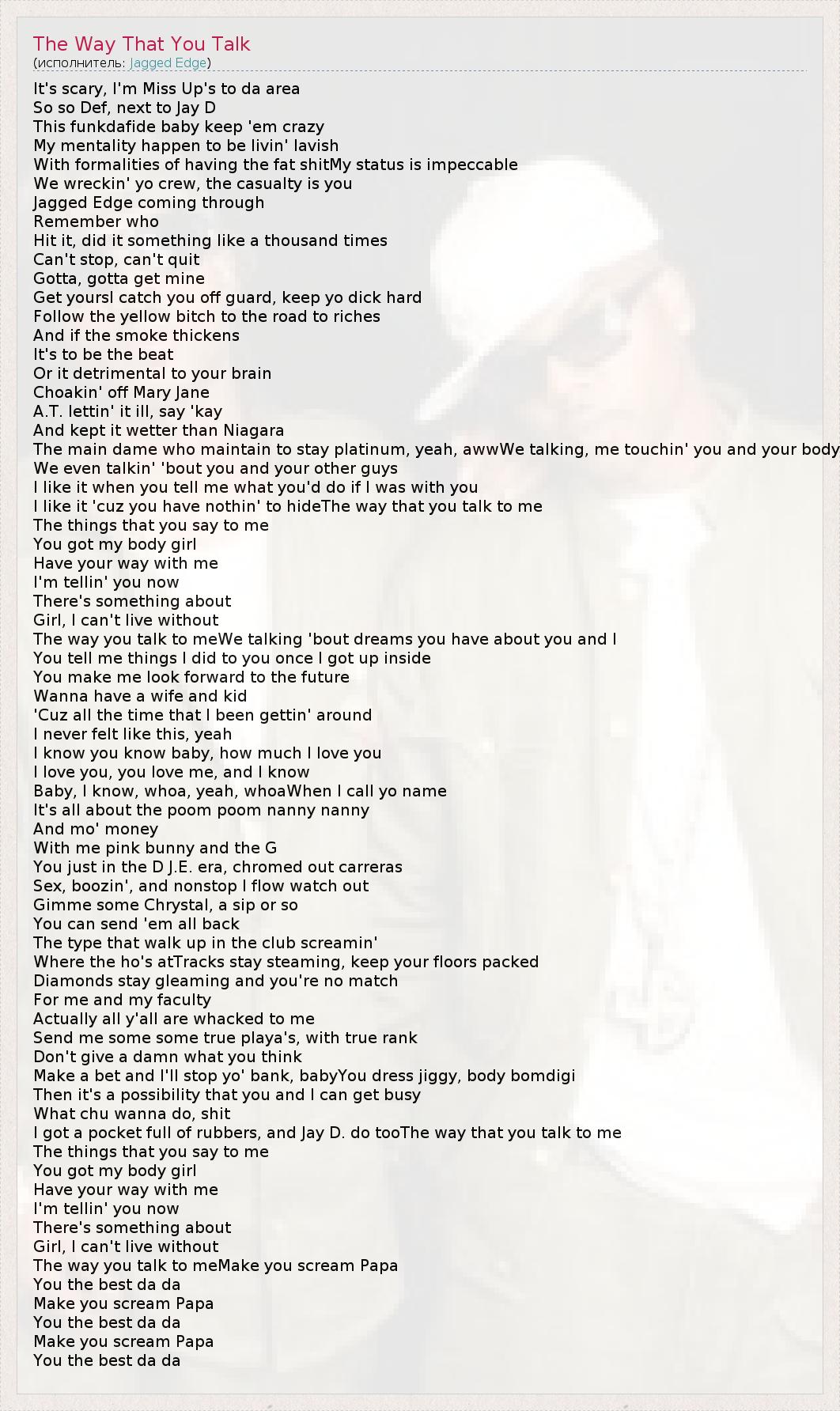 А как ты думаешь, о чем песня "The Way That You Talk" ?