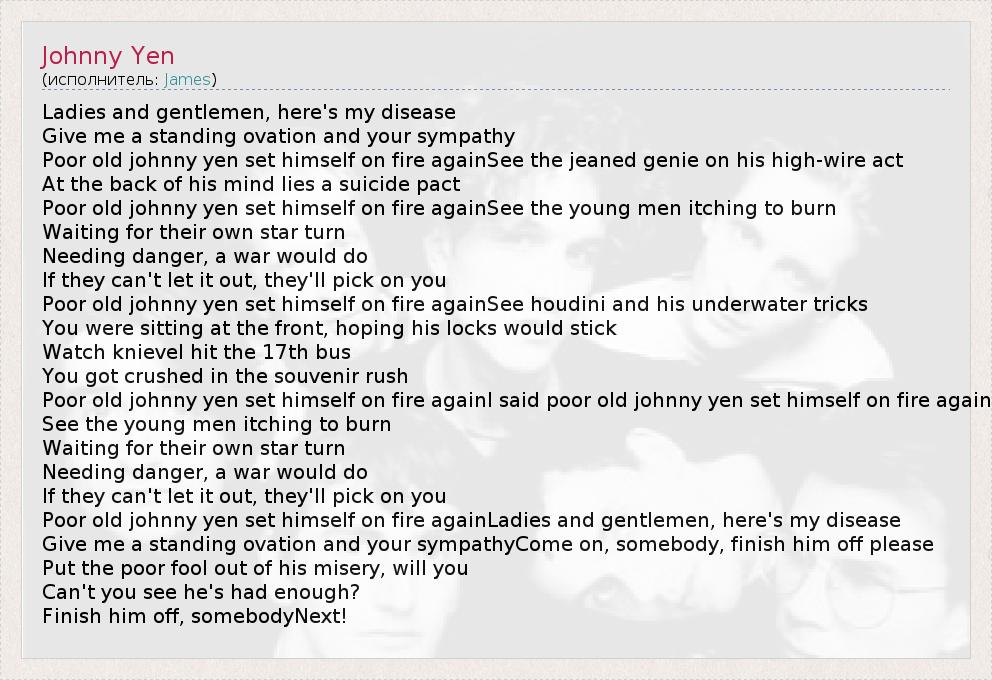 А как ты думаешь, о чем песня "Johnny Yen" ?