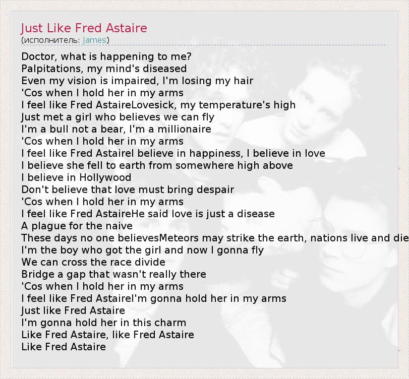 А как ты думаешь, о чем песня "Just Like Fred Astaire" ?