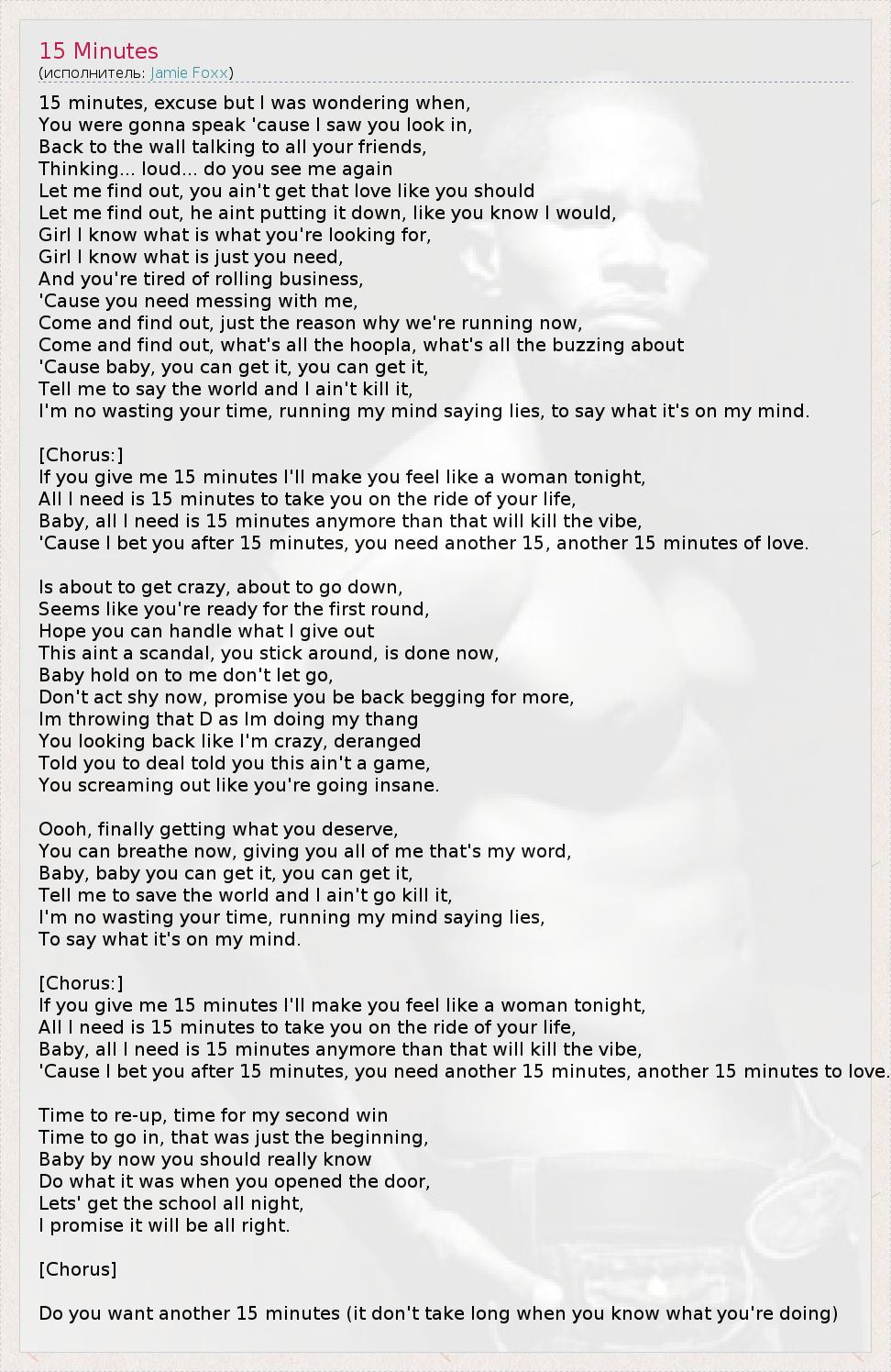 'Cause I bet you after 15 minutes, you need another 15 minutes, another 15 minutes to love.